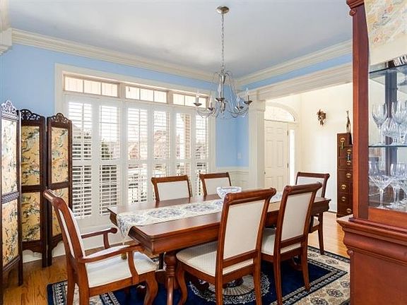 - DINING ROOM DESC: Wood Floor, 10? + Ceiling, Smooth Ceiling, Chair Rail, Window Cov, Crown Mold