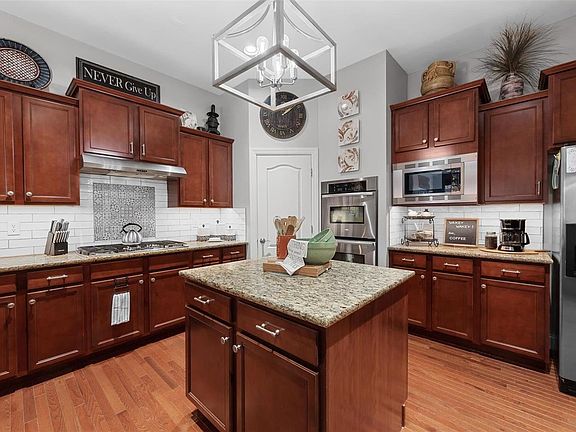 Welcome to 105 Castlewood Estates - a must see 4 bed + 3.5 bath Lombardo Home w/finished lower level on a private walk-out lot. The ranch floor plan boasts a wide entry Foyer leading to an expansive Great Room, Kitchen/Nook and Sunroom. Meal prep in the beautiful Chef's Kitchen featuring 36/42 staggered cabinets + hardware, crown molding, granite, custom backsplash, SS appliances, center island and walk-in pantry. Master Suite offers a coffered ceiling, 2 walk-in closets, + a Luxury Master Bathroom: separate shower & tub, adult height vanity & water closet. Partially finished lower level w/9" pour features a Rec Room, full kitchen, bedroom, bathroom, 2nd laundry room and den. Bedroom 2 and 3 share a Jack and Jill bathroom. Step outside to the Outdoor Oasis: composite deck, patio + firepit overlooking the beautiful landscaping. Wood floors combined with the neutral colors, custom millwork and homeowner updates make this home One-Of-A-Kind! MOVE-IN READY and conveniently located off DD!