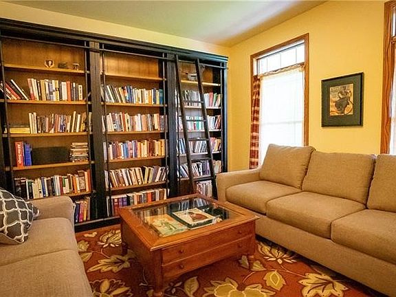 Drive up the decorative concrete driveway to this grand two story five bedroom home. Surrounded by columned wrap around porch and nestled on a two acre parcel in the heart of Slippery Rock, this fine home doesn't disappoint! Gorgeous hardwood floors throughout first floor, including inviting family room w/fireplace flanked by gorgeous wood built in shelves. First floor den/office, stunning kitchen with beautiful granite countertops and ample counter and cabinetry features stainless steel appliances. Lower level is equally impressive with spacious game room and kitchenette. Upper level offers large master suite w/ensuite bath featuring jacuzzi tub, double sinks, and walk in closet. Screened in covered rear porch overlooking a private fenced in back yard and large two stall garage complete this amazing property.