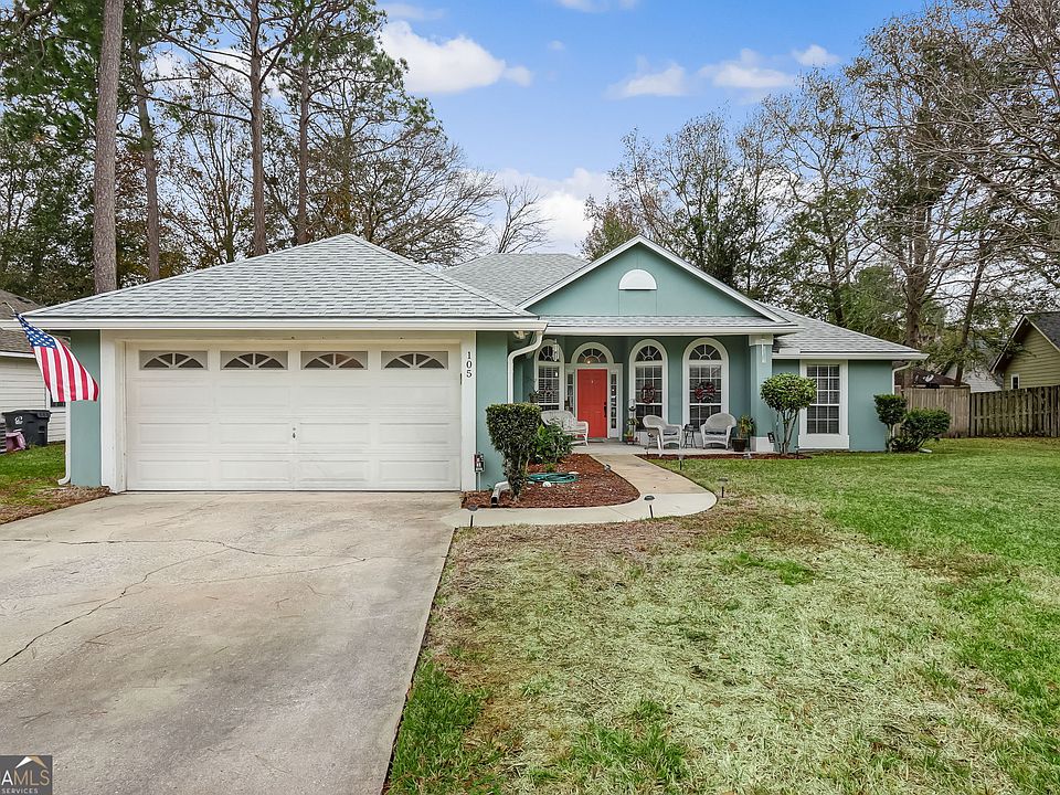 Nestled in the serenity of a quiet cul-de-sac, your future home awaits! Step into the heart of the home, where the open floor plan seamlessly connects the kitchen, dining, and living areas. Kitchen features a convenient breakfast bar for casual meals and entertaining, a new stainless steel refrigerator, pantry, and laundry room. The split bedroom floor plan sets the stage for a versatile living experience, providing privacy and functionality for both residents and guests. Primary bedroom features ensuite with dual vanities, separate shower, oversized soaker tub, and walk-in closet. Venturing outdoors, you will find a fenced backyard providing a private escape that combines serenity with functionality, including a mosquito misting system. The storage shed, equipped with electricity, adds a touch of convenience, providing space for hobbies, tools, or a cozy retreat. Sugarmill Plantation amenities include a community pool, tennis courts, playground, and walking paths. New water heater; roof 2017. Call today for your private showing!