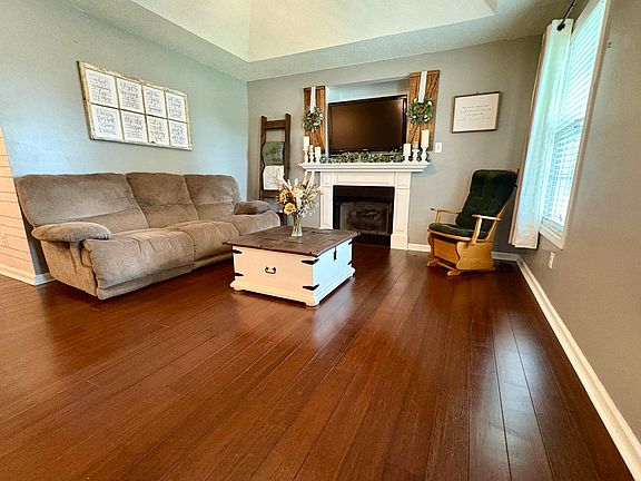 Inside, the open living and dining combo welcomes you with hardwood floors, a cozy gas fireplace, and beautiful tray ceilings that add depth and elegance to the space. The layout flows easily, making it ideal for everyday living and entertaining.