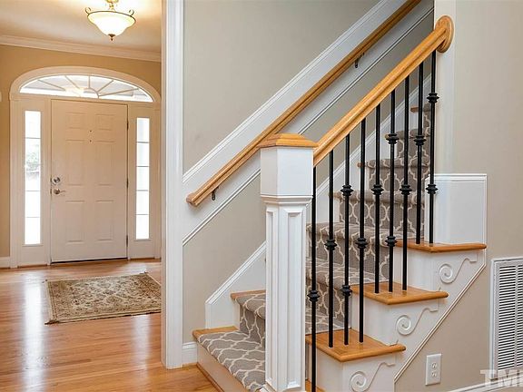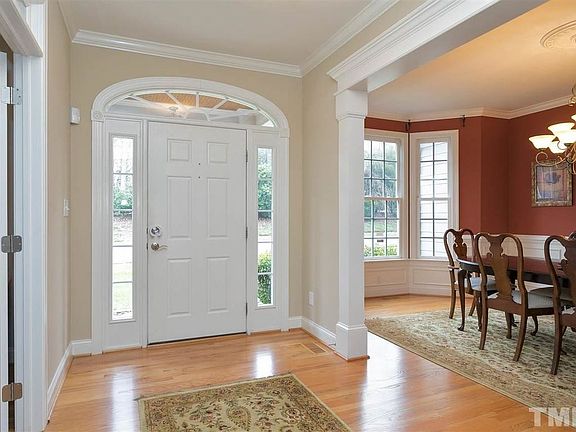 Custom home in Cary with attention to every detail! Site-finished hardwoods, extensive trim, tiled baths, updated carpet & paint. Brick front porch, sunlit foyer, dining rm & French doors to office/LR. Enjoy the spacious family room w/gas FP opening to gourmet kitchen featuring SS appls, gas cooktop, island, desk, pantry. Has 1st fl bdrm, 2 staircases, large mstr suite, bonus & huge walkup attic. Screened porch w/grilling deck, landscaped w/fence & irrigation & backs to woods. It's all about location!