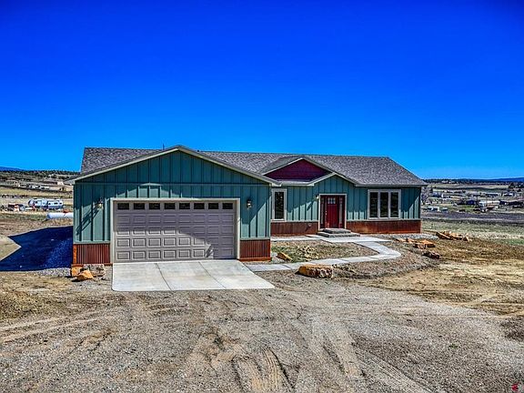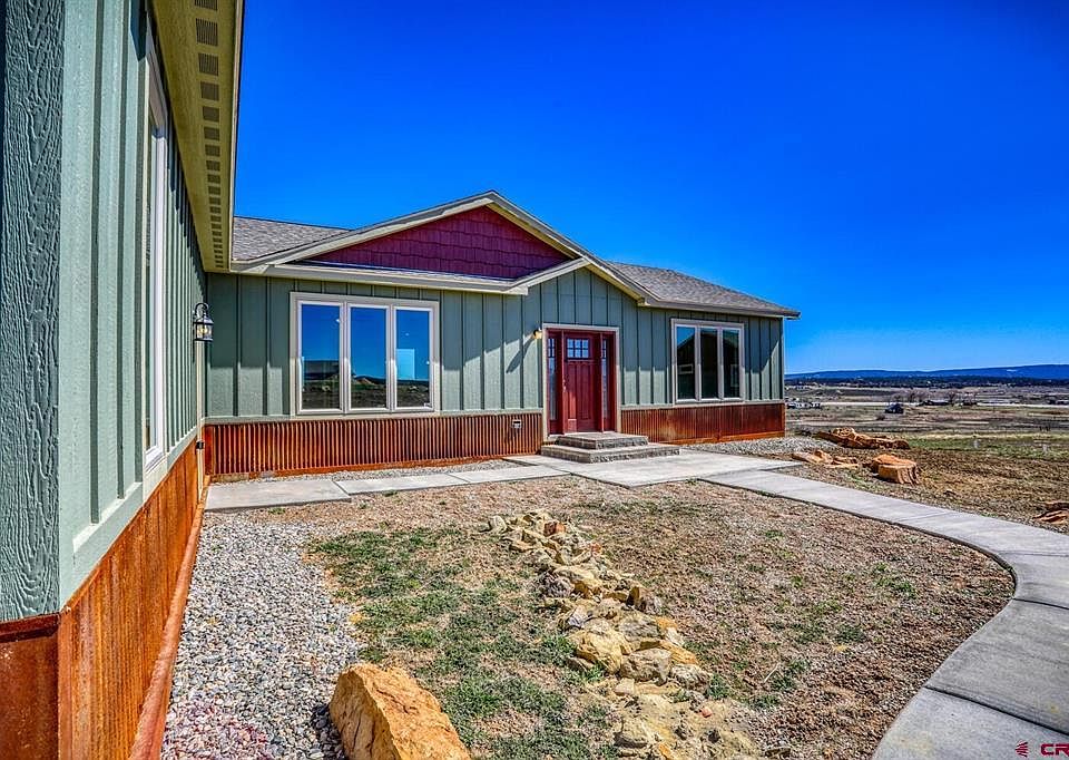 Space is the name of the game with this residence, with over an acre to spread out on, wide open views and 9’ ceilings this open concept ranch style home has the room you need. The exterior is clad in stylish board and batt siding. Inside you will find an expansive living area for entertaining and quiet evenings in. This area flows through a sliding glass door to the back yard when the fun can continue. Beyond the backyard are 22 acres of open space that wrap around the neighborhood, great for exploring and taking four legged friends for a stroll. The chef of the house will appreciate the gas cooktop clad with a functional vent hood. Entertaining or baking will be a joy with the walk in pantry, large island/ breakfast bar with power plugs and wall mounted oven. The LaPlata mountains are visible from the living room. The oversized utility room is as functional as it is stunning, it is ready for a washer and dryer, has plentiful storage cabinets, a utility sink and its own storage closets. The deep 2 car garage leaves room for storage and workspace. In the master suite two sinks with a trendy backdrop are prominent from the bedroom, to their left is an oversized walk-in closet already set up with storage shelves and closet rods. One the other side of the bathroom suite is a well done walk in shower. Mercy Hospital is an easy 14 minute drive away. This home was built with 2x6 construction R21 insulation in the walls R50 in the floor and ceiling for a comfortable living space. This property comes with water rights and an irrigation ditch that runs through the back yard. Domestic water comes from a water company, no well to worry about. See virtual and 3D tours for more photos. Some photos of this listing may include virtually staged amenities, furniture or fixtures. Floorplan dimensions are approximate.