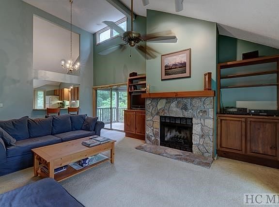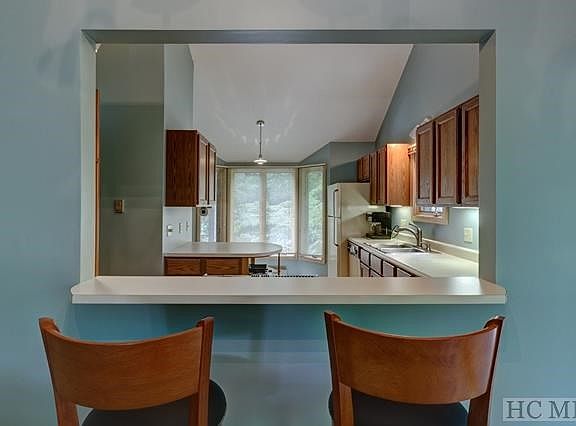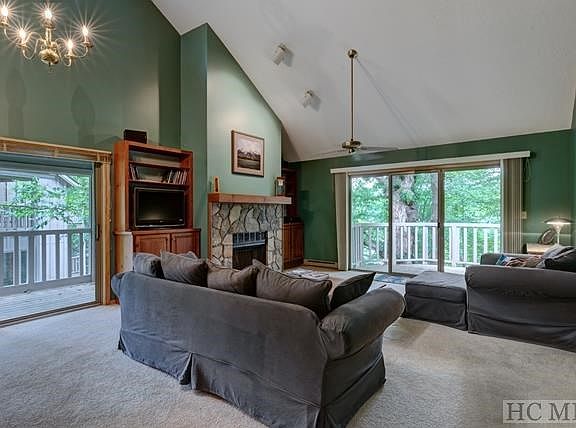 Very private, crisp and clean condo in Chestnut Cove. The condo is being offered fully furnished. The greatroom, kitchen and foyer have vaulted ceilings. The side porch is screened; the back deck is open and has some view. It is important to note that this unit is well positioned to avoid late afternoon sun and with all of the trees it stays nice and cool. Social or Golf Membership in Highlands Falls is available with approval of the Buyer but is also optional.