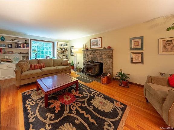 Move right in to this meticulously well maintained Colonial home that sits on 3.8 acres of much desired privacy! Great for entertaining! This home features 4 generous sized bedrooms and 2.5 baths, a beautiful stone fireplace in the living room with gorgeous built ins along with hardwood floors throughout the house. Eat in kitchen and formal dining room. The Lower level features plenty of storage along with a laundry room, a workbench and a family room with wood beamed ceiling and a fireplace with a wood stove insert. Easy walkout access to the beautiful back yard. Conveniently located close to major highways, Pfizer, Electric Boat, Coast Guard and so much more!