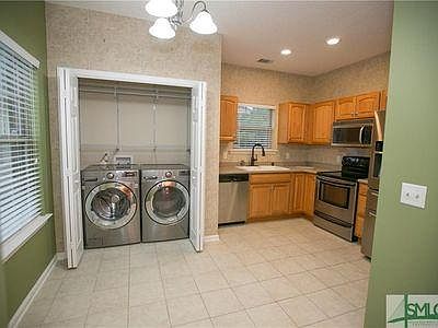 FABULOUS 3BR/2.5 BATH BRICK TOWNHOME SET IN THE DESIRABLE AREA OF POOLER. BEAUTIFULLY UPDATED W/NEW CARPET UPSTAIRS IN GUEST BDRMS. SET OFF THE FOYER, IS THE FORMAL DINING ROOM WITH NEW MOLDING AND COLUMNED ENTRANCE. SPACIOUS MASTER ON THE MAIN FLOOR FEATURING AN ELEGANT CEILING, LARGE WALK-IN CLOSET AND LUXURY BATH WITH DOUBLE SINKS, SEPARATE SHOWER AND SPA TUB. FRESH INTERIOR, DESIGNER PAINT, NEW CEILING FANS, CUSTOM CLOSETS, NEW MOLDING AND WOOD LAM FLOORS DOWN. FULLY EQUIPPED KITCHEN OFFERING STAINLESS STEEL APPLIANCES (INCLUDING A NEW WASHER/DRYER_, PANTRY, TILE FLOORING AND SMALL BREAKFAST NOOK. VOLUME CEILING IN THE GREATROOM WITH FAN, BRICK FIREPLACE & SINGLE FRENCH DOOR TO THE REAR PATIO. DETACHED DOUBLE GARAGE W/NEW INSULATION & FLOORED ATTIC. EASY LIVING IN CARRIAGE SQUARE WITH LOVELY AMENITIES INCLUDING A COMMUNITY POOL, CLUBHOUSE AND TENNIS COURTS. Credit Report, USA Background Check & Renters Insurance