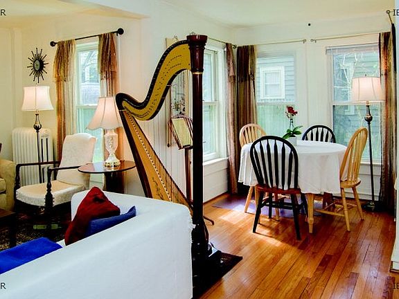 Charming Belle Sherman home on a quiet street with a deep private yard. Come garden! Wonderfully social porch with swing. Come visit! Hardwood floors thru three bedrooms and 1 1/2 baths, family room/den and large living room. Eat-in kitchen with cherry cabinets, Corian & butcher block counters and ceramic tile floor. Plus, studio-office with skylights on second story of garage makes this a versatile home: office, art/ music space, your dream. Really close to Cornell.