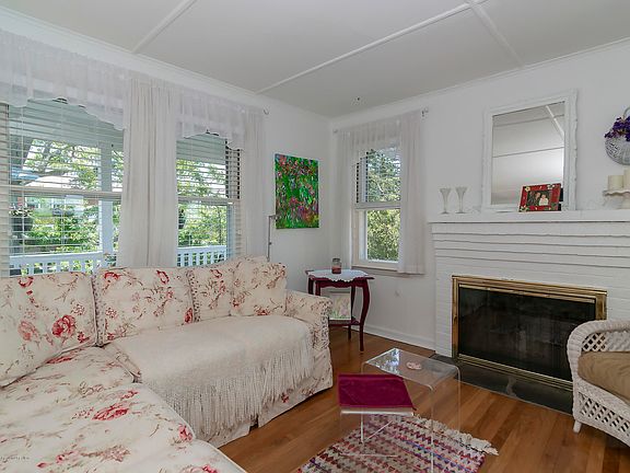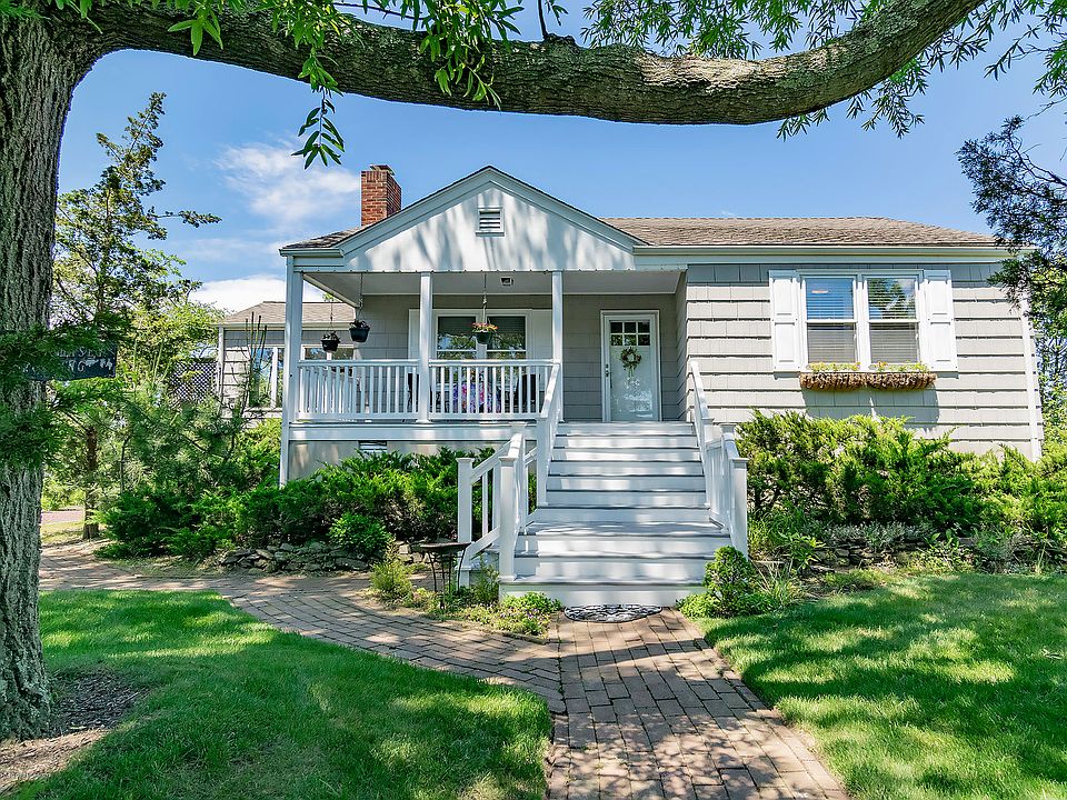 Delightful waterfront hideaway, this charming cottage is a perfect summer home or ideal for year round living. In a tranquil natural setting, great water views are complemented by the beautiful gardens. Launch your kayak in your own backyard or walk to the beach. Open floor plan with crisp, white decor accentuating the 'shore' style of this quaint treasure. Gorgeous newer eat-in kitchen, newer bath, inviting family room brings the outdoors in with walls of windows, hardwood floors throughout, convenient built-ins, rocking chair front porch, central air and many other amenities.