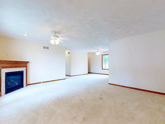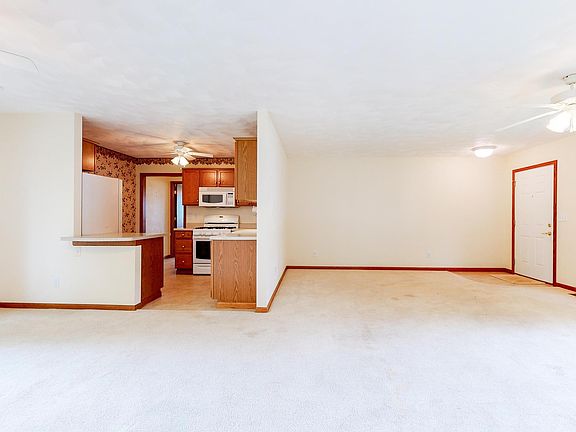 Beautiful zero lot line ranch on a corner lot. 2/3 bedrooms, 1.5 baths, with extra-large 2 car garage. BRAND NEW carpet throughout. This unit is one of the bigger units in the community. It does offer a large den that could easily be converted to a third bedroom with a closet addition. Convenient one level living. Monthly association fee includes lawn care and snow removal. Roof and A/C replaced in 2014. All appliances stay including washer and dryer.
