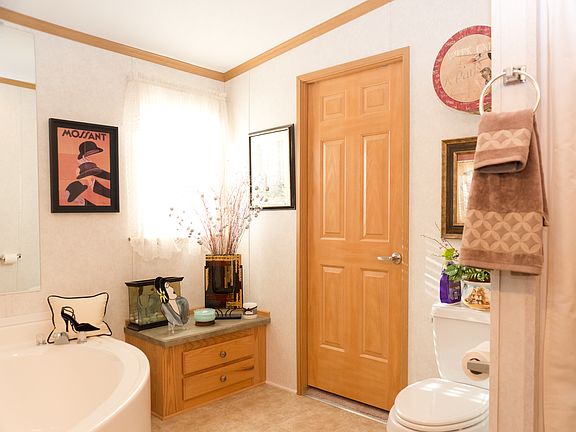 Premium Lakeside property. The master bedroom boasts a large walk-in closet, garden tub, separate shower, and a double sink. A laundry room that features fullsize washer and dryer and a new, on-demand hot-water heater. Outdoor features include: 12x12 detached shed, a large deck and overlooking the lake with a power Sunsetter awning, two car driveway and wheelchair ramp Community Amenities include: pool, club house, exercise facility, playground, basketball and volleyball courts, and a picnic pavillion. Current monthly lot rent $620.00. This includes trash pick up, lawn service and snow removal Equity Lifestyle Properties ,Inc. requires a credit/background check before any sales can be finalized