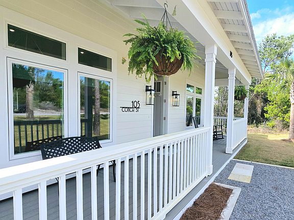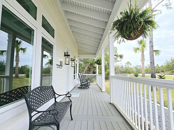 Welcome to your newly built oasis in a quiet, upscale community of Sunset Village! This stunning 3 bedroom, 2 bath home near the community pool offers the perfect blend of luxury and tranquility, ideal for a beach getaway or a family home. You will notice the dramatic 13'6'' ceilings with lovely crown molding that gives the entire home an open and large feel. Both bathrooms have exquisite tile work in the showers and the Owners room has a featured soaking tub. The kitchen is a dream with Custom Kitchen Cabinets (w/12'' glass stacks) with an abundance of storage and motion LED lighting (uppers and lowers) and lovely quartz countertops. As a new home, you don't need to worry as the house is equipped with hurricane rated windows and doors, connection for generator and the whole house has surge protection. If you work from home, there are two built in work stations to choose from, and for the days you want to work outside, go enjoy the sun deck that overlooks the Gulf. You will be able to see some of the most extraordinaire sunsets from this open deck. Just minutes from the Gulf waters and sugar-white sands of St. Joe Beach, enjoy the ultimate coastal lifestyle with easy access to sun, sea, and sand. Located in an X-Flood Zone, this home provides added security and peace of mind. Don't miss out on this incredible opportunity to own a piece of paradise in Sunset Village! Reach out today for a 3D tour link and the list of all features.