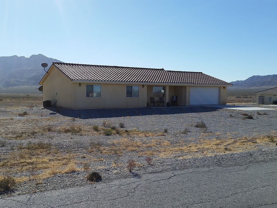 VIEWS! This 3 brm/2 full bath home on 2.76 acres in exclusive Stewart Valley, Shoshone, CA. It is well maintained, pristine, and move-in ready. Home has mountain views from every angle and is surrounded by protected BLM lands. No HOA fees in the valley with only a dozen homes. It is 15 minutes from center of Pahrump, NV, and an hour from Las Vegas! SNOW BIRDS love this area! Inside the home is an open floorplan kitchen, living and dining area. Laundry is steps away in the finished attached 2-car garage. Hall bath across from 2 guestrooms. Large Master bedroom with full bath. You have got to see these breathtaking views that can be yours! ACT NOW!