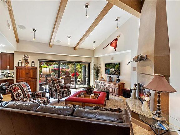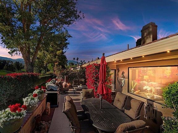SHOWCASE OF CHAPARRAL! LOCATION, SOLAR & TURNKEY! A custom designed 5-star home by well know designer Steven de Christopher combines spectacular panoramic southern mountain views with privacy, comfort and meticulous attention to detail. This entertainer's dream offers a totally redesigned and expanded floorplan with exquisite beamed ceilings unique in the development, giant picture window entry, large travertine floors, a spectacular accent fireplace wall, gourmet kitchen with large island surrounded by beautiful custom hardwood cabinetry, built in wine cooler, gas cooktop all basking in the natural light from the huge kitchen picture window. This magnificent open concept living area flows seamlessly onto the spacious tile patio with privacy wall, space heater and ample comfortable seating. Each bathroom has been upgraded with matching tile, large walk-in showers, gorgeous granite counter tops, refinished ceilings, recessed lighting and new toilets. No feature overlooked; upgraded window treatments throughout, water softener, atrium converted into a den/3rd bedroom, living room, bedroom and dining room ceiling fans. Newer A/C, FAU and water heater with high-efficiency dual pane windows and sliders complete this feature rich residence. This home has it all - bright, inviting and well appointed... Located in the heart of Palm Desert, Chaparral offers golf, 21 pools, tennis, pickle-ball, gym, activity center and a remodeled clubhouse with world-class dining and entertainment