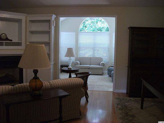 Tradition Club in Litchfield Beach. Much to love and enjoy with this, 3 bedroom, 2 bath, Traditional style home. Home is situated on the golf course and features include: tile and hardwood floors, split bedroom floor plan, roomy kitchen, laundry room, 2 car garage, vaulted ceilings, Carolina room, tray ceilings in Master bedroom, large tiled shower, walk in closet, family room/dining room with a fireplace and custom built in entertainment cabinetry. Home owners in the Tradition Golf Community enjoy private beach access through Litchfield By the Sea. All beautifully and meticulously cared for, landscaping and common areas, fishing ponds, biking and walking paths and more. Conveniently located, only minutes from Myrtle Beach, Historic Pawleys Island and the Historic City of Georgetown, SC. Brook Green Gardens, dining, entertainment, shopping, and medical facilities.