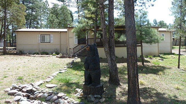 Super clean and well cared for manufactured home with an add-on. This home has been in the same family for over 35 years. Almost move-in ready and sells furnished as viewed. Custom cabinets and built-ins with marble tops, free-standing gas stove, gas forced heat, washer and dryer, freezer, dishwasher, garbage disposal, metal roof and hot tub are just some of the "perks" to this home. Lovely landscaping on this Ponderosa Pine treed lot. Easy access in town. This would make a great summer home or year-around home. You'll appreciate the pride of ownership given this home. Take a look!