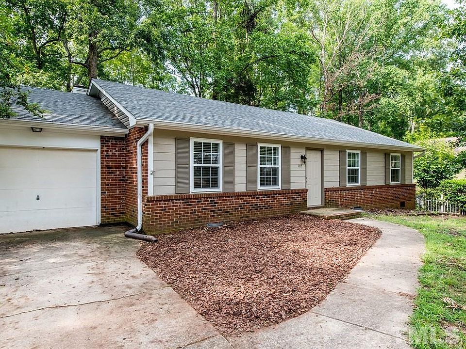 LOCATION, LOCATION, LOCATION! Great schools! Brick ranch with 1-car garage! Foyer, Kitchen, Family Room with Pergo floors! Carpet in rest of home. Kitchen with bar open to BIG family room with cozy brick fireplace! Formal living room opens to dining room! Three good-sized bedrooms! Fenced yard and deck! One minute to US 1/Hwy 64, Cary Parkway, Shopping and more! Washer, dryer, fridge included. Small pet considered w/ Pet Fee of $300 per pet. Available October 1st! Showings start Tuesday 9/21.