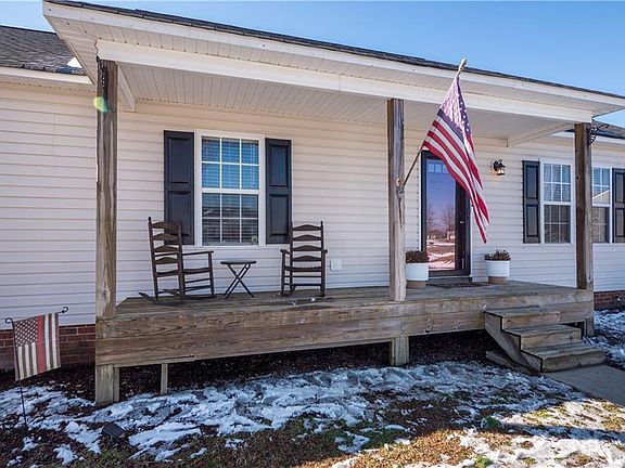 Welcome home! This charming 3-bedroom, 2-bath ranch is peacefully nestled on just over 1.3 acres on a quiet cut-de-sac, offering both privacy and convenience. The property boasts *numerous upgrades* that make it truly move-in ready! Inside, you'll love the beautiful plank flooring and the updated stainless steel kitchen sink that adds a modern touch. Major updates include a new roof (with ridge vent) and water heater, both installed in 2020. In late 2024, new back doors, front door, storm doors, and a nice 10x10 deck were added to enhance the home's appeal and functionality. Step outside to find a *LARGE detached metal garage/shop* with two garage bays, complete with water and power, great for hobbies, storage, or workspace needs. With over an acre of land, this property offers room to roam, garden, sit by the fire-pit, or relax in your serene surroundings. Don't miss this gem! Schedule your tour today!