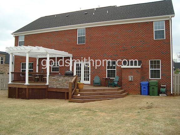 4BR/2.5BA, 3200 Sq. Ft. home with huge bonus room and three car garage in gated community. This two story brick home is only two years old! Hardwood Floors downstairs with formal living room 10; dining room with tray ceilings and office with carpeting and French doors. Open, eat in kitchen with hardwood floors, granite countertops, tile backslash and island. Stainless steel refrigerator, gas stove, microwave and dishwasher. Cozy den with carpeting and gas log fireplace. Laundry on main Floor with ceramic tile flooring. (Washer and dryer negotiable to stay in house.) 2-tier custom-built deck with special lighting, stainless steel bar refrigerator and Primo ceramic smoker grill built into rock/granite countertop. Privacy fence in backyard with swingset. Master Suite with tray ceiling and ceiling fan. Master bath with tile floors, two vanities with granite countertops, shower, garden tub and walk closet with custom shelving. Hall bath with dual sink granite vanity and tile floors. Central A/C with Gas Heat. Sidewalks throughout community with picnic areas, sculpted pool 10; clubhouse, playground, ponds and swings. Smoke free environment throughout. No pets/no exceptions. Alarm system available with activation.