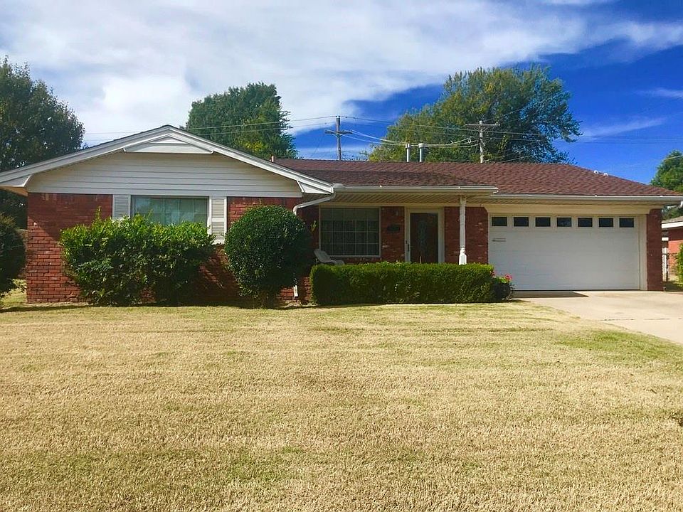 Clean! Move in Ready! 4 bed 3 full baths 2 living areas, Sprinkler system, Ceiling fans, updated kitchen with corian counter tops, antique fireplace , built in desk, tons of storage, wood floors, covered front porch and covered back patio with fenced yard. Located close to shopping, dining, highway access, Tinker AFB, Boeing and more, call for your private showing.