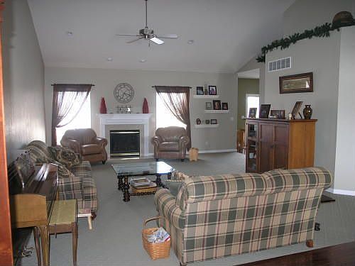 Just like new! This 3 BR, 2 bath ranch has spacious rooms w/ plenty of room for lots of furniture. LR has vault, plant shelves, a high end berber carpet & gas fireplace. Beautiful kitchen w/ wood floors, cherry cabinets w/ crown, black appliances, breakfast bar & door to covered patio & huge yard backing to field. The master is just wonderful..lots of space for furniture, adult height double vanity, whirlpool tub & sep. shower. 9 ft. ceilings on main level, oversized 2 car gar, egress windows in basement. Must see! Don't forget...buy or sell with me and use my moving truck to move for FREE!