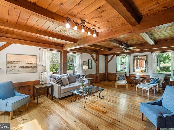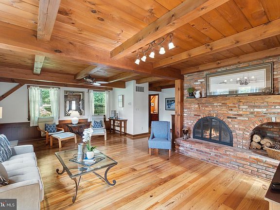The term "one-of-a-kind" is highly overused in real estate descriptions today. But from the moment you walk into this stunning post and beam home featuring exposed brick, multiple stained glass windows, and exposed beams spread across 4 levels and featuring 4 bedrooms and 3.5 bathrooms, you'll understand no other term would suffice. This home deftly balances natural light with its large windows and 11 skylights against the cozy warmth of the abundant natural wood throughout. The main level features a spacious kitchen with granite countertops and a large peninsula, dining area adjacent to a living room overlooking the professionally manicured backyard, a sun room with vaulted ceilings, skylights and exposed brick, and a massive family room with the first of two wood burning fireplaces. The first of two upper levels features an absolutely stunning primary suite with a stained glass window that will stop you in your tracks, exposed beams, wood burning fireplace, walk in closet and upgraded en-suite bathroom. There are two additional bedrooms and a hall bathroom. The upper level features a fourth bedroom and loft overlooking the primary suite. The basement has a large great room, tons of storage, and a full bathroom. This home, tucked away in a quiet cul-de-sac, is idyllically situated on a pristine lot with mature trees, a massive brick patio, pond with waterfall and an oversized detached garage with electric and a rough in. Updates abound including roof and all new skylights (2021) , both heat pumps (2017), HardiPlank siding, driveway (2020), French drain (2022), and so much more.
