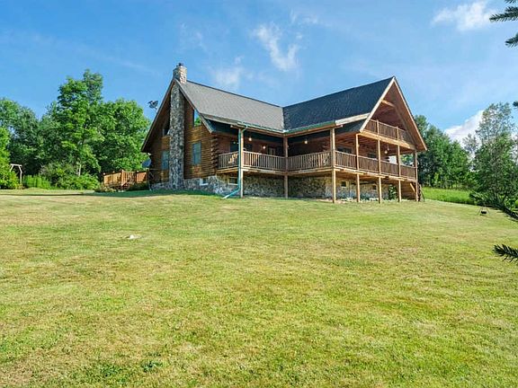 The best time of year in the Great Western Catskills is, well, any time you're here! Take full advantage of everything this Beaver Mountain log home on 12.53 private acres has to offer, no matter the season. With eye-catching views to captivate you in almost every room, you will love what mother nature brings, even when she's acting up. The picture-perfect rocking-chair front porch is covered on the main level, as is the master suite's private balcony - both with breath-taking south-eastern views of the mountains. Watch the mist rising from the valley, track the sun as it climbs each morning, or marvel at the autumn foliage - all from the comfort of your private cedar-stained covered deck. And in the protected back, soak in the rays on the copious open deck and patio, complete with outdoor shower! All that before you've even set foot inside. Hand-crafted details can be found on each of the three levels of this home, from the hand-laid kitchen tile floor with river-stone inlays, to the individually hand-carved balustrades, to the barn-wood-fashioned guest bathroom vanity and linen closet and the custom coffered ceiling in the downstairs family room - this home offers unique details -- simply unavailable in any other home because they were created by the current owners. And yet, the home also has all features of a Catskill log home you would expect, including a soaring cathedral ceiling with exposed beams throughout the house, a flagstone hearth with a WOOD STOVE, and maple flooring on the main level and Australian cypress on the 2nd-level master suite. All the interior doors are six-panel solid wood. The kitchen has hickory cabinets, granite counters and all stainless-steel appliances. The ultra-comfortable oil-fired circulating hot-water heat is kept inside by the ANDERSEN double-hung thermopane windows, skylights and sliders. The master suite offers dual walk-in closets, skylights and a gorgeous bright-white tile bathroom with jetted tub and separate standing shower, and an interior balcony/study overlooking the living room. A convenient laundry is installed in the breeze-way between the house and the over-sized two-car garage. AND there is a fantastic BONUS ROOM / apartment over the garage with its own half bath (which could easily become a full bath) and SECOND BONUS BEDROOM downstairs (think 5 separate spaces for all your guests, family, and friends). Literally minutes from Margaretville or Andes, and close to Belleayre and Plattekill ski mountains, as well as the Pepacton reservoir for some great fishing, canoeing and kayaking.