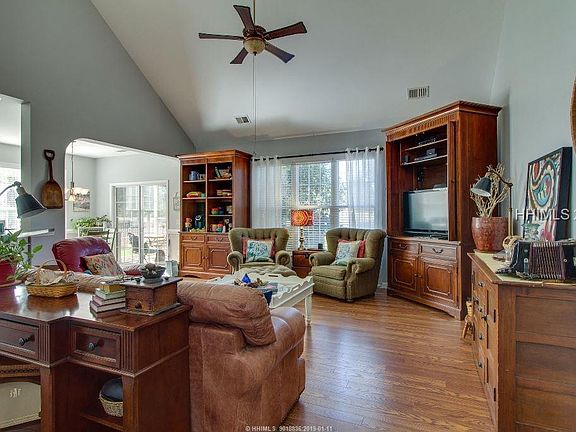 Beautiful Jordan model, 4 bedroom, 2 ½ bath home on the fourteenth hole of Pinecrest Golf Course! Lovely interior w/fresh paint, newer hardwood flooring & stainless steel appliances. Open floor plan w/spacious great room, kitchen w/ breakfast nook, & front great room leading to a spacious dining room. 3 bedrooms upstairs & a loft for office/flex space. Enjoy the seasons from your screened patio & Savannah brick paver patio w/built in gas firepit. The large rear yard is fully fenced for pets & family. Newer HVAC system (2017downstairs). The front drive is expanded by 2 feet on each side! Roof inspected and repaired 2019.