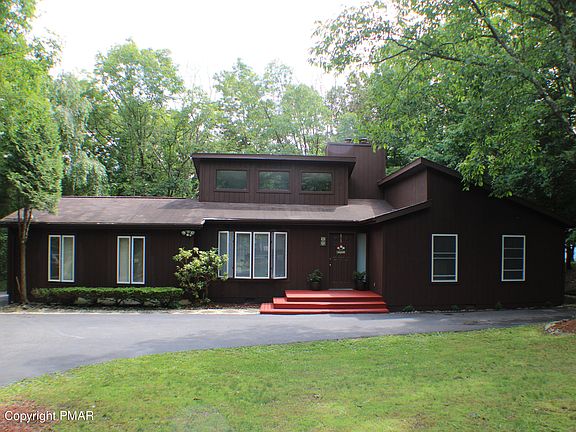 Property is Under Contract! All additional offers are for back up purposes Only! You'll love this quaint, 3 bedroom 2 bath ranch-style home on its corner 1 acre lot, w/a circular paved driveway & Shed. Though your neighborhood feels like a vacation community, YOUR new home is in the Pleasant Valley School District & 10 minutes to Shopping, Highways, plus many Pocono Tourism Spots/Amenities. Your home is Surrounded by privacy trees & flowers. This natural home features hardwood floors, an updated bathroom & Eat-in Kitchen designed for cozy dinners. Floor to Ceiling Brick Wood Burning Fireplace, Plenty of Natural Light, Entertaining Deck & a driveway that can host many out of town guests' Vehicles. This Home has a Fresh neutral Canvas for you to design as your OWN!