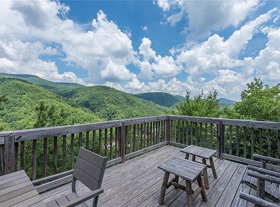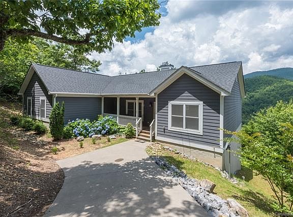 Climb this paved mountain road for spectacular views. Newer open concept incredible views from almost every room. 4-year successful rental history with 29 "5 star reviews" averaging almost $20k per year, and owner has not been renting in the winter months. This beautifully built, like new home has year-round views, three large bedrooms, two tiles baths and a two car attached garage. The house was built so that the basement which is plumbed can easily be finished, doubling the size of this home. The open concept was designed for entertaining with a deck perfect for taking in the views, a two-sided fireplace separating the dining area from the living area, and an open kitchen. Uniquely located, this home is only 20 min from Asheville or Black Mountain, high on a mountain and still on a paved road! Home features two concrete driveways one to the front door, and a second to the side facing two car garage. Scheduled around vacation rental tenants. Make an appointment today!