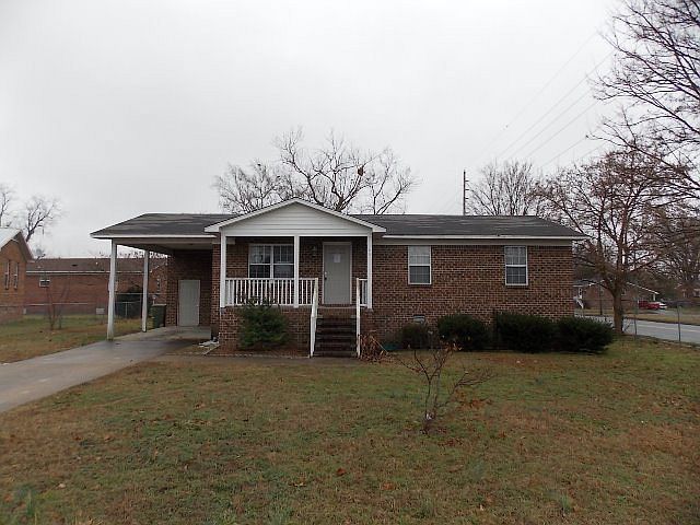 Corner Lot, 3BR/2BA brick ranch being sold AS IS. Laminate wood flooring except in 2 bedrooms. Master with private bath. Covered front porch, single attached carport and partially fenced yard.