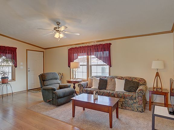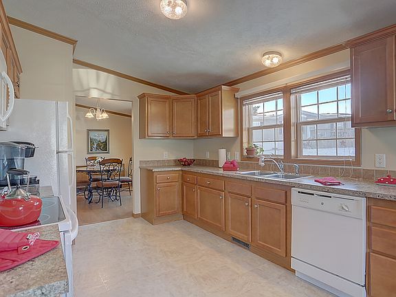Move-in ready! This two bedroom, two full bath mobile in Pheasant Ridge has been lovingly maintained and updated. Step onto an actual porch or use the brick walkway to the convenient ramp and you will be impressed with the amount of living space and storage. The kitchen has ample cabinets plus an eat-in area along with a separate dining area. The master suite has a walk-in closet, plus bath with higher height vanity, two closets, and walk-in shower.