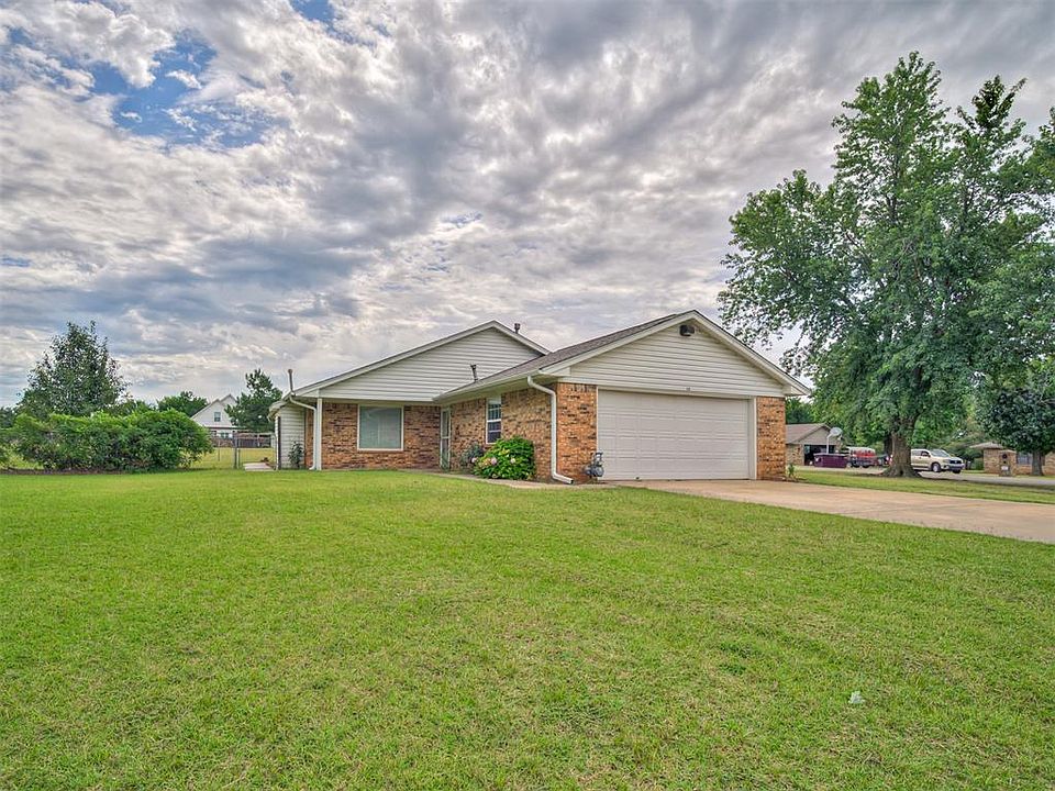 Discover the perfect blend of rural tranquility and modern accessibility in this inviting brick home, nestled on a .905 acre lot, with 3 beds and 2 baths. Safety and peace of mind are paramount in this home, with a safe room/storm shelter located in the garage. For those who love to bask in natural light and enjoy the outdoors, the sunroom off the back of the house offers a serene space to unwind and take in the surrounding landscape. While embracing a rural setting that allows you to escape the hustle and bustle, this property doesn't compromise on convenience. Located just 2 minutes from I-40, you'll have easy access to OKC. With its spacious layout, thoughtful amenities, and prime location, this is an opportunity you won't want to miss. Schedule your viewing today!