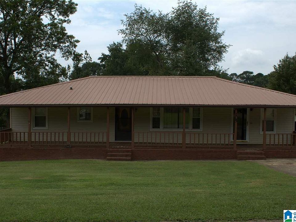 Front porch waiting for a swing! This home has low-maintenance vinyl siding & brick exterior with metal roof. Beautiful hardwood floors throughout this 4 bedroom, 2 bath home. (One bath has a tub and the other a corner shower stall), a large kitchen with two eat-in areas, formal living room & dining room, den and a 2 car detached garage with portable 2 car metal awning. **Adjoining fenced lot parcel no. 22-08-34-0-005-069.001 is included in sales price. House is on .33 and lot is .30 acre)**