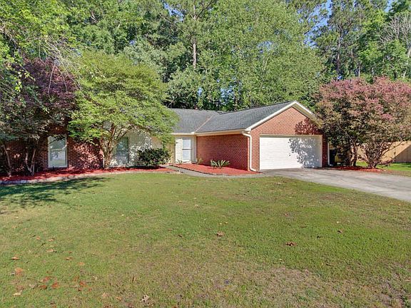 This ranch-style home, in Goose Creek, provides comfort and plenty of upgrades. This 1,816-square-foot dwelling sits on a quiet cul de sac with limited traffic. The exterior is hugged by multiple trees, adding a forest appeal to the traditional home. Once inside, you will be wowed by the renovations. A freshly painted interior, gleaming hardwood flooring, wood burning fireplace and elegant crown molding are among the eye-catching features. Enjoy a fancy meal within the formal dining room. Relax with family and friends in the living room that offers dramatic high vaulted ceilings, great views and crown molding. Sliding glass doors lead out to a quaint slab deck- the perfect spot for grilling or enjoying cocktails in the open air. The spacious backyard is filled with trees that offer..... shade and a picturesque aesthetic. The large kitchen offers stainless steel fridge, lots of counter space for meal prep, custom cabinetry and bar to dine at. Bedrooms feature wainscotting, with the master boasting crown molding, great views, plenty of space for additional furniture and a designer walk-in closet, with shelving, one has to see to believe! The master bathroom delivers his and her vanities, modern lighting and a tiled shower that has a Mediterranean feel. Close to great shops, eateries and sights, this property won't stay on the market for long!Use preferred lender to buy this home and receive an incentive towards your closing costs!
