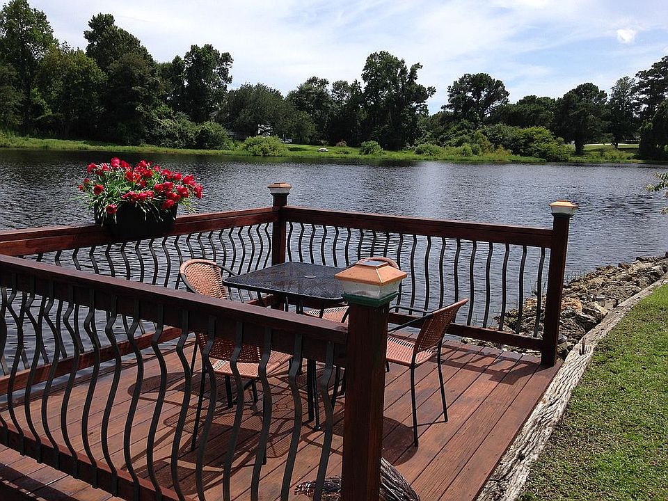 Beautiful lakefront property with private sitting dock. Single level. Tiled entry, kitchen and bathrooms, hardwood floors throughout. 2 wood decks. Huge lot with long driveway. Separate laundry room with hookups for washer and electric dryer. No RV parking is permitted in the community. Renter is responsible for lawn care.
