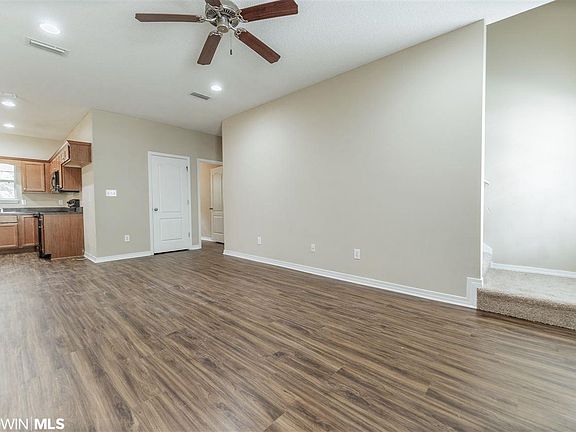 Recently updated with new luxury vinyl plank flooring and carpet in the upstairs bedrooms this is in move in ready condition. This spacious open plan has a large living room area that opens into the kitchen. The kitchen has an great island with a lot of counter top space and loads of cabinets for storage. Also all the appliances are included. Just off the morning room are a set of double doors that lead outside onto a covered back porch that overlooks a private wooded area. It's perfect for a grill or to just sit outside and enjoy the natural setting. Also included down stairs is an additional half bath. The master bedroom is large enough for a king sized bed and has an attached master bath with plenty of closet space, a soaker tub and separate shower. Upstairs are the additional two bedrooms with another bathroom. The large front yard has room to play, garden or just enjoy the privacy. The community has multiple pools, a horse stable, a yacht club and also a golf course. Alabama Right of Redemption may apply.
