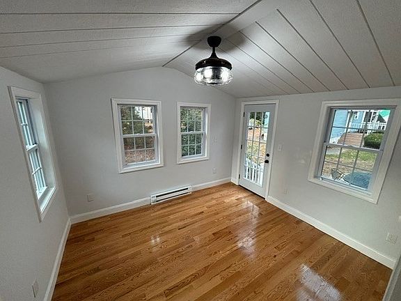 Welcome to this beautifully updated home. Newly remodeled kitchen with white shaker soft close cabinets, quartz countertops, deep stainless sink, stainless steel appliances, tile backsplash and so much more. All new windows and exterior doors have just been installed and there is hardwood floors throughout home. Freshly painted both in and out with composite decking and railings. Bright and sunny heated sunroom, new BROAN heating system, hot water heater and front loader washer in dryer makes moving in easy. Newly plumbed and remodeled bathroom has soft close marble top vanity and walk in white tiled shower. Electrical panel has been replaced. Lot is set back with storage shed. Park has inground pool and club house.Too many renovations to list them all, Property is a must see.