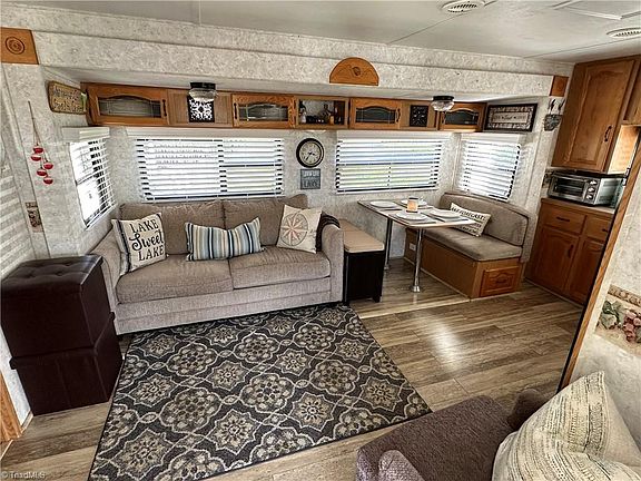 Come start enjoying the Lake Life today in this wonderful one bedroom camper with great covered deck to enjoy the sunshine and fresh air. This property has a very large driveway to park all you boats, cars, golf carts and includes storage building. This property is located inside the gated community of Badin Shores Resort on Badin Lake. The resort has lake access, pool, marina, beach area, play ground, restaurant, putt putt, basketball courts, and all paved roads.