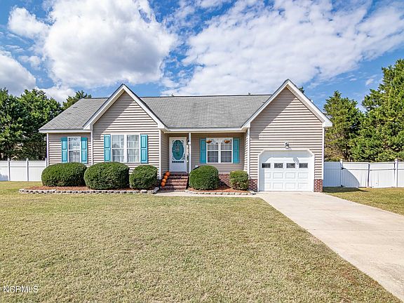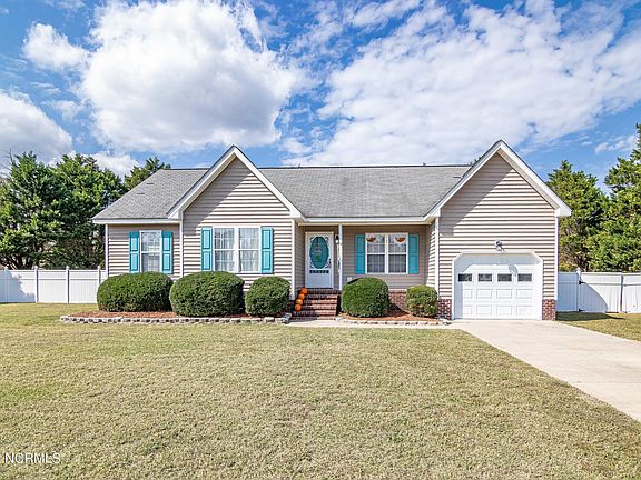 Only 15 miles from SJAFB and 5 min to get to Hwy 70 for easy commute to Raleigh. This charming home has been recently given a fresh look, new counter tops in the kitchen, new carpet in bedrooms , new LVP in Kitchen and baths. Freshly painted throughout. Beautiful privacy white vinyl fencing in the backyard. This home is on a private cul de sac in the desired CBA school district.