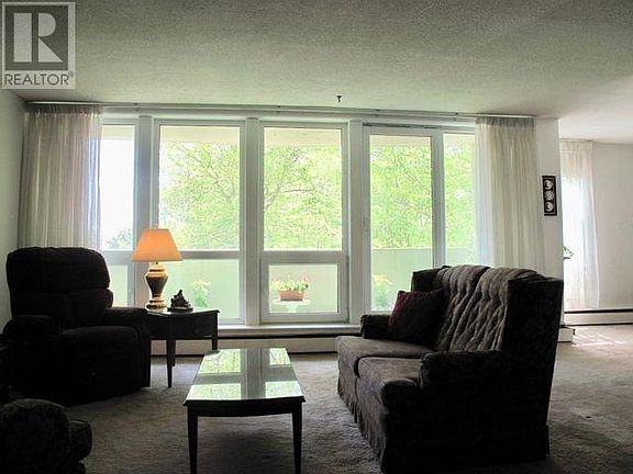 This very spacious (1535 sq. ft.) 3 bedroom plus den, 2 full bathroom raised main level condo apt. overlooks the quiet treed grounds of Parkhill Terrace with an eastern sun exposure. Enjoy the large tall windows throughout, the very spacious and open living and dining area great for entertaining, the large, private, sheltered balcony, the tucked away pleasant den with lots of natural light, the galley kitchen with eat-in area, 3 good sized bedrooms with the master having a 4 piece ensuite. A well maintained building with great common spaces - laundry room per floor, personal storage units, the lobby seating area, event/social room, the garden, wheelchair accessibility, elevator, gym room, bike room, workshop, and 1 designated outdoor parking space. The condo fees also cover the heat and water. This condo offers a wonderful opportunity, at this price, for the new owner to update as they would like and to enjoy good living in a popular neighbourhood of Clayton Park. Close to all amenities - Canada Games Centre, grocery shopping et al, library, parks, trails, Mount Saint Vincent University. (id:1184)