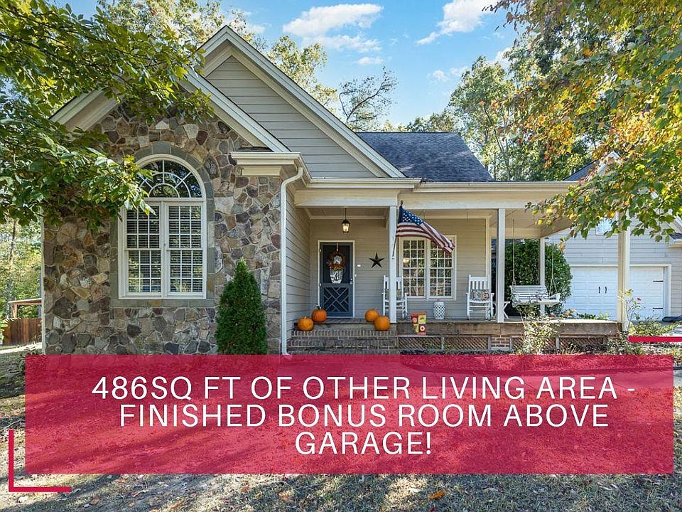 Wonderful three bedroom home in Louisburg. Over half an acre, 486 square feet of finished living space above the detached garage! Hardwood floors in living areas, vaulted ceilings create extra space. Screened in patio area and fenced in back yard!