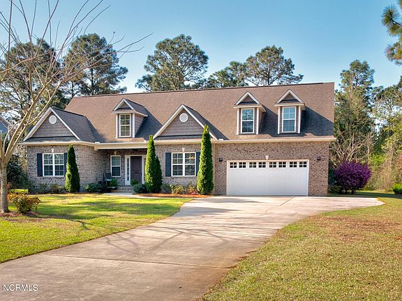 This brick home with a large front porch is situated on .49 acre in the lovely gated community of Pelican Reef. This home features an ample foyer welcoming you to the living room. The living room is open to the nicely appointed eat in kitchen and has access to a large screened porch overlooking a yard that backs up to the forest. The private owner suite features a walk in closet, separate tub/shower and dual sinks. The upstairs bonus room has a full bath and is perfect for the 4th bedroom. Pelican Reef is a gated community with water access to Virginia Creek, a community pool, clubhouse, fitness center and tennis. Minutes away to the beach, shopping and restaurants.
