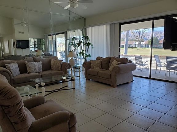 This Stunning-End Unit, Plan 300, 3-bedroom, 2-bathroom condo located in Rancho Las Palmas Country Club is move-in ready!! You have private Security once you enter RLPCC and in your condo. You will enjoy these breathtaking views of the mountains create a serene ambiance. The 3rd bedroom has been converted to an office/family room. .Step into your enclosed backyard that overlooks the golf course and marvel at the stunning views that surround you. BBQ pit outside with Coal. You have a community Pool right across from the Condo. It's a perfect spot for relaxing, entertaining, or simply enjoying the picturesque scenery. Convenience is at your fingertips with the proximity to The River in Rancho Mirage, which offers a unique selection of shops and restaurants for your dining and entertainment needs. Eisenhower hospital is easily accessible and connecting to the I-10 freeway is a breeze via Monterey. Plus, as a resident of Rancho Las Palmas Country Club, you'll have access to the 27-hole golf course, 27 tennis, pickle ball courts, 20 community pools, clubhouse with spa and fitness facility, House is offered Turnkey Furnished