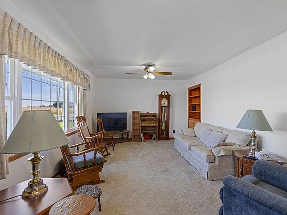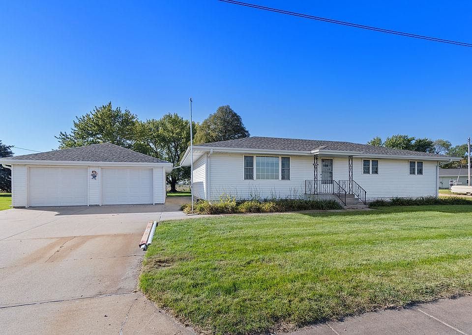 In town rancher with a country setting! Well maintained move-in ready home. New impact resistant shingles October 2025. New windows 2003 with transferable warranty; furnace and central air July 2012 with internet compatible thermostat added July 2025; dryer Dec. 2021; washer March 2017; refrigerator May 2012; water heater Jan 2020; dehumidifier 2024. Underground sprinkler 12 zone system installed 1989 by Gary Mueller, new controller (Orbit) added May 2025 and connected to city water. Old well and pump system could still be used with Rainbird controller. Key pad locks on entrance doors. ring door bell and camera in garage included. Basement stubbed for bath. Drain tile installed in 1993, new sump pump Dec. 2024. Furnace air ducts cleaned and sanitized July 2025 by Comfort Specialists. insulation added to attic with solar fan.