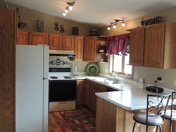 3 bedroom 2 bath split foyer with double garage. large family room with gas fireplace & built in bookshelves beside it. Located on the south edge of Crooks. Open floor plan with vaulted ceilings and laminate floors in living room, dining, & kitchen. There is an extra parking pad on the side of the garage and the back yard is fenced in with a 10 by 10 storage shed. Mature trees & evergreens make it feel like a park in the backyard.
