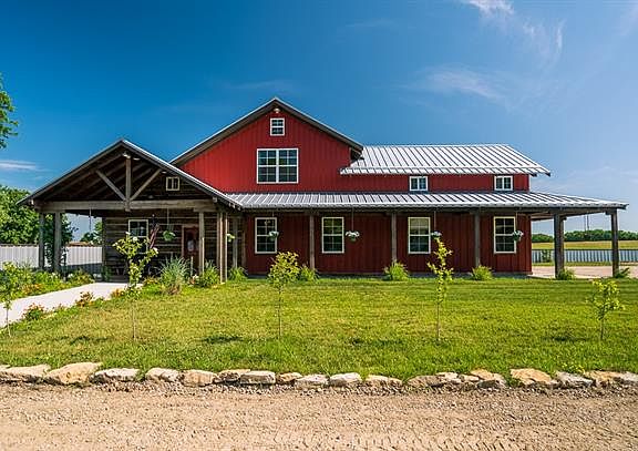 Unique & rustic 3 BR 2.5 bath barndominium home is an inspiration of days gone by! Timber framed front porch w/ceiling fan is a mixture of douglas fir, cedar & the support beams are yellow pine from an 1897 hardware store.The front door is custom made w/douglas fir with barn hinges w/copper inserts & hardware cloth wire enclosed in glass & the doorway is trimmed in walnut. 2 sides of covered porch are 7x47 with the East side that is 7x30 w/wood trimmed ceilings all around & concrete walkways. New front sidewalk leading to front porch is 12x20. 20x30 tandem garage w/ concrete floor & has a 10x8 insulated w/spray foam garage door that is wired for a side mount opener. There are pull down stairs and a 4 ft ledge loft area that could be enclosed as a bonus room, used for storage or the current opening could be set up to be used for a car lift. Large pantry area off garage. MBR has a large bathroom with laundry hooks ups, a walk in closet & a shower/tub room. Faux white washed hallway wall leads to Master BR. Private metal fenced yard overlooks open field. The kitchen has 2 islands w/concrete countertops & is set up for a dishwasher. The tin faced cabinets were made out of floor boards in barn hay loft of yellow & white pine. The living room wall has a tin ceiling w/ support beam from the 1897 hardware store. Beautiful walnut mantle in LR has an opening that is set up for a ventless gas or electric FP. Security lights in all gables with dimmers.Upstairs are 2 BR's with walk in closets with slide barn doors, white washed spruce accent walls, custom made wood BR doors & spruce wood ceilings that offer so much charm & character.There is also a laundry hook up on level 2 plus a full bathroom w/a jetted tub w/shower & a double vanity. 1/2 bath & stairway walls have yellow pine ship lap barn siding.This home is a labor of love of yesteryear w/the modern amenities of today. Nicely landscaped.There is room for a possible shop. Don't miss out on this one!!