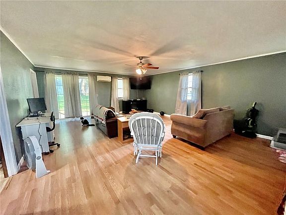 Root and Cheer from your own lawn! Comfortable Ranch on a 1/2 acre corner lot. Small town. BIG HEART. Famous for their 4th of July Picnics! 2/1 home with big rooms. Tons of potential to make it your own. Lovely generous shaded lawn, concrete patio in back. Extra storage shed, covered parking. Also comes with an original earth cellar. Corner lot neighbors the old high school and football stadium.