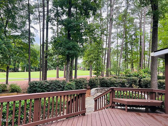 ON FAIRWAYS GOLF COURSE IN PRESTON! Shows beautifully! 3 Car Garage - perfect for a golf cart! Incredible updated primary bathroom with spacious walk in closet! Recently painted with hardwoods on 1st floor. Kitchen has granite counters, bar counter seating & double oven. Screened porch, huge deck for entertaining & stone patio. Refrigerator, washer & dryer included. Excellent location near the airport, RTP, 540 & 40. Separate membership required for the clubhouse, pool, tennis & golf
