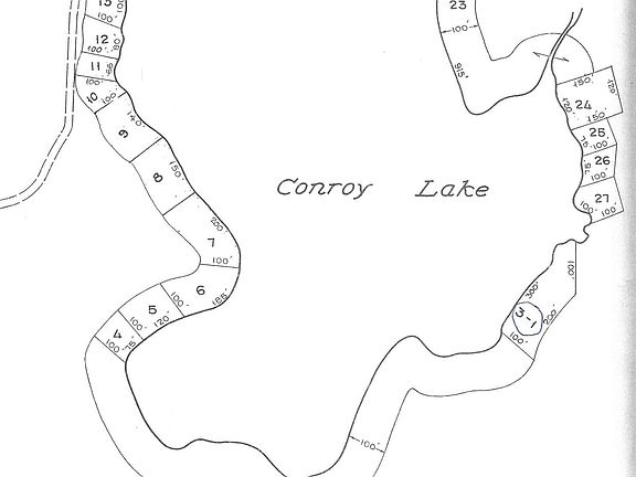 0.60 acre lot on Conroy Lake with 300' of water frontage. This is not a buildable lot. The lake is 26 acres with a maximum depth of 108'. Also included is a 2.5+/- acre lot across the road. Build your dream home here and enjoy the lake frontage across the road.