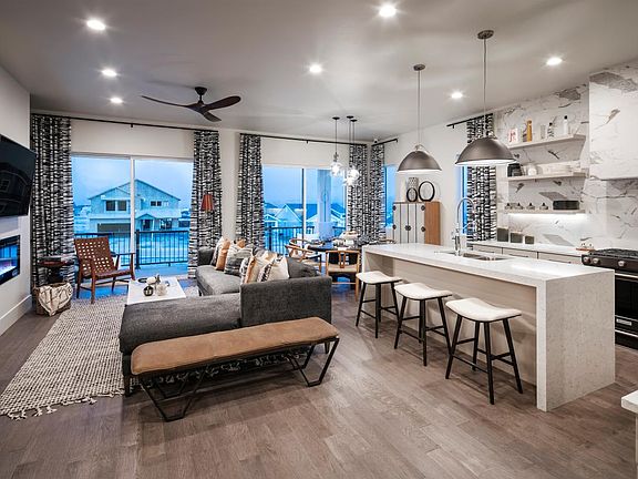 Deluxe urban family living. The Scofield's welcoming covered entry and inviting extended foyer reveal views of the spacious great room, bright casual dining area, and desirable luxury outdoor living space beyond. The well-designed kitchen is equipped with a large center island with breakfast bar, plenty of counter and cabinet space, thoughtful prep area, and sizable walk-in pantry. The gracious primary bedroom suite is highlighted by a generous walk-in closet and spa-like primary bath with dual-sink vanity, luxe glass-enclosed shower with seat and drying area, and private water closet. Secondary bedrooms feature roomy closets and shared full Jack-and-Jill bath with separate dual-sink vanity area. Additional highlights include a convenient powder room, centrally located laundry, and additional storage.